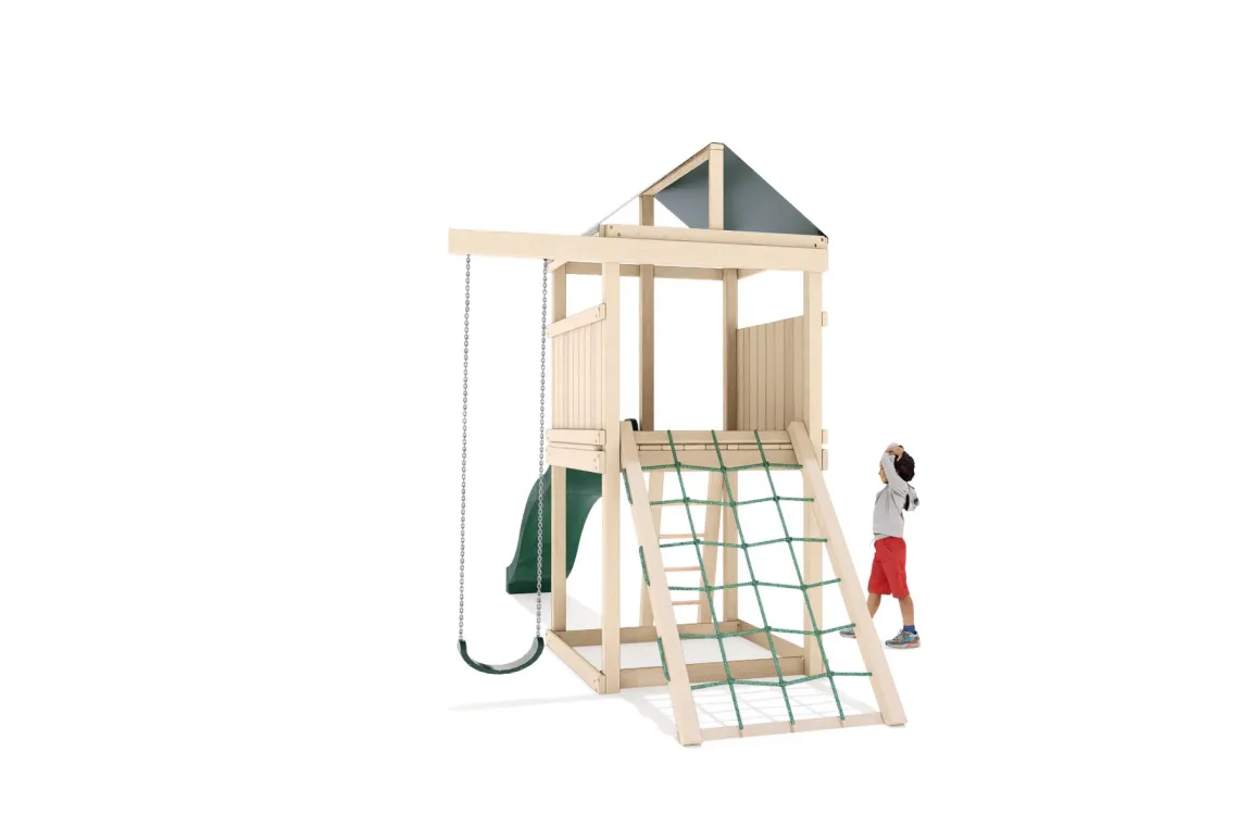This Jungle adventurer package 1 comes complete with cargo net, wave slide, one-position swing and ladder, guaranteed to give your little ones hours and hours of fun. Built with premium quality timber in our Wiltshire workshop and installed in your garden, our Jungle Clubhouse is built to last and withstand lots of young children playing and creating long-lasting memories.