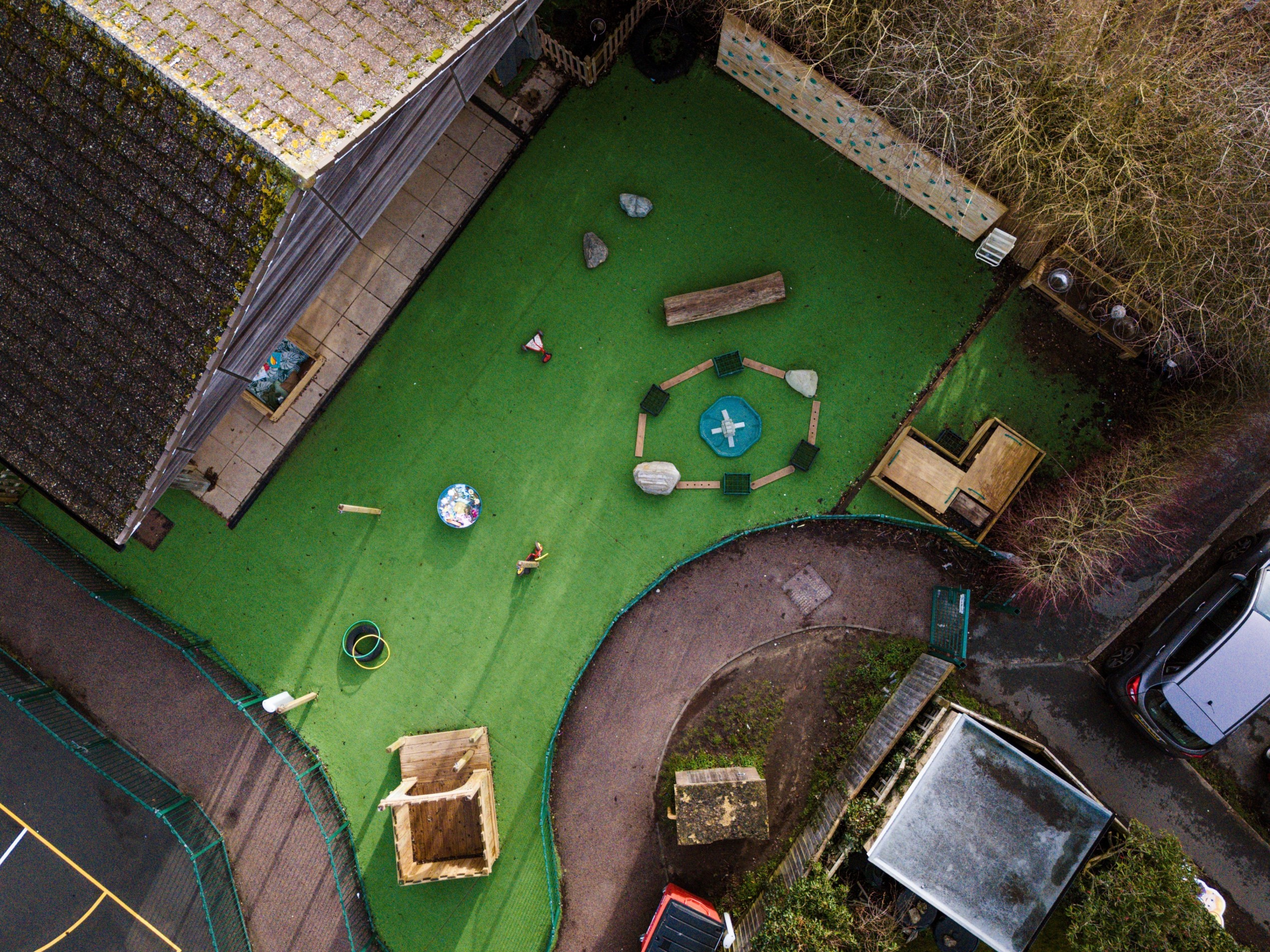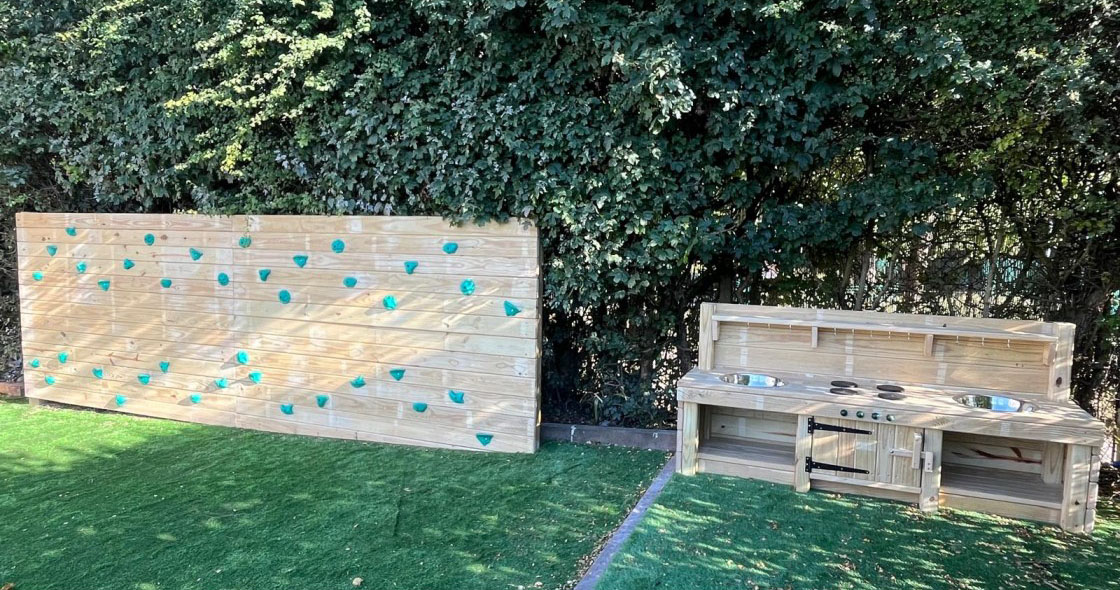 At the back of the nursery is an outside which was a perfect setting for an outdoor play area, the brief was to make sure it was suitable for all ages at the nursery, and also sparks their imagination.