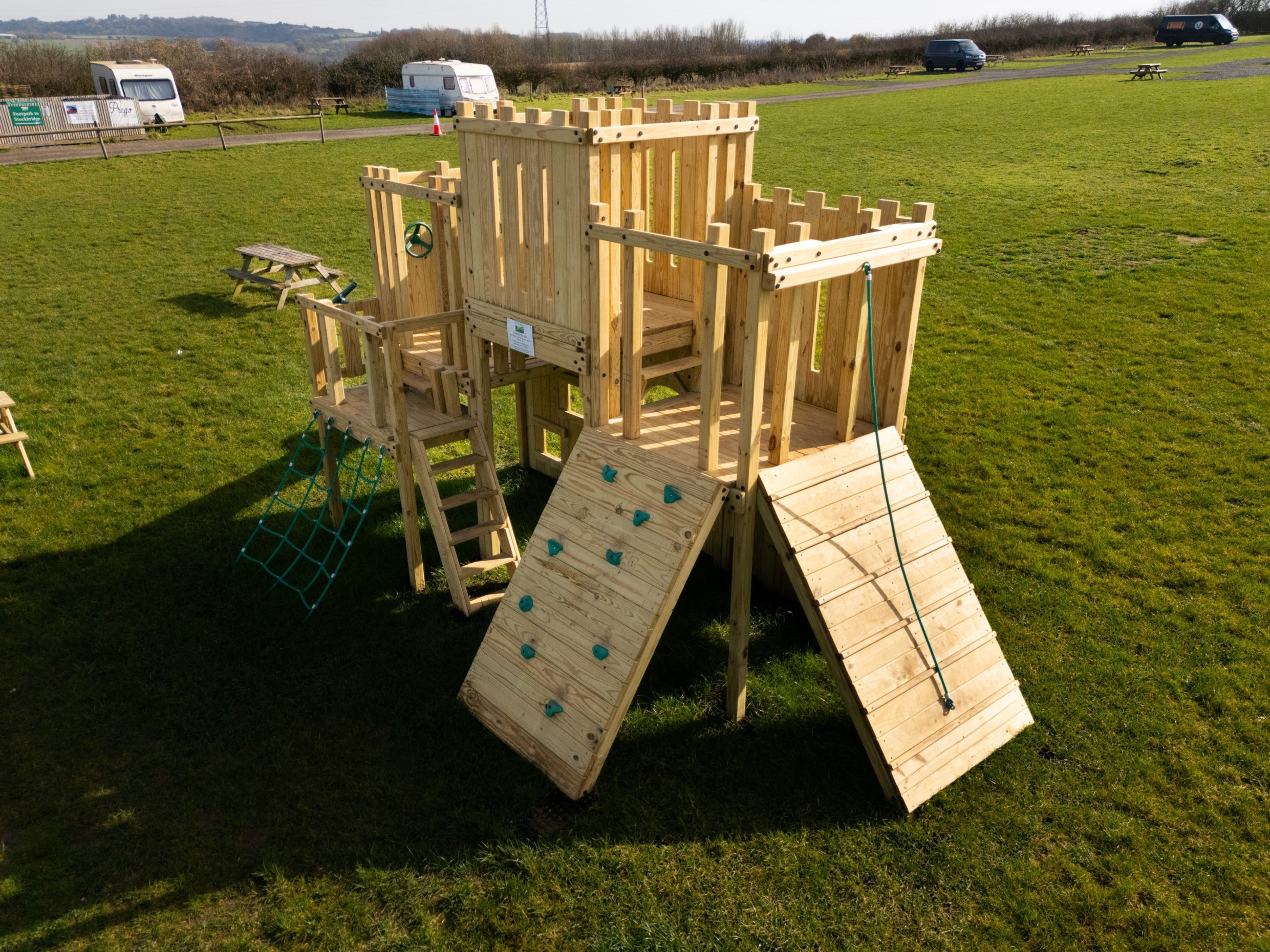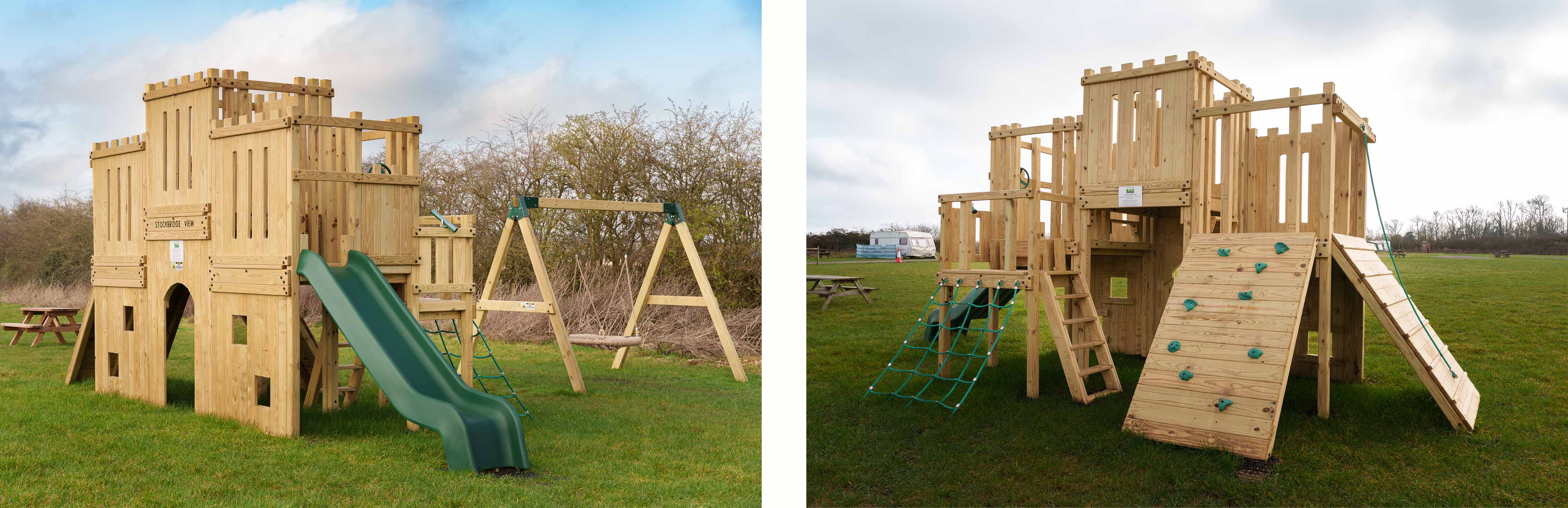 David from the campsite got in touch via our website with an idea of what he wanted to include in their new play area, “Something like a climbing fort with swings and a slide”. Kim from our sales team, headed down to Hampshire to meet David to look at the space and to run through some initial design ideas. We’ll also run through our warranties and the benefits of a wooden play area.
