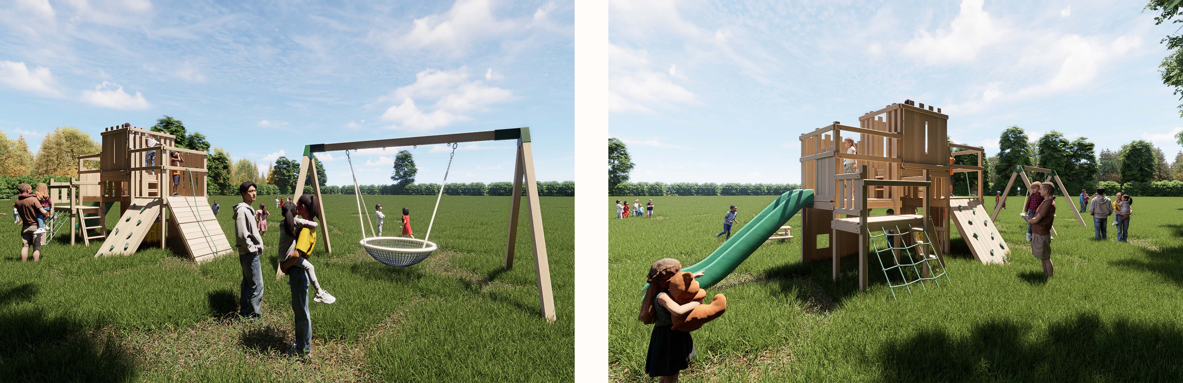 With photos and notes in hand, Kim created the brief for Amy, one of our playground designers. For all of our designs, we'll create 3D renders of your new play area, a lot of thought and consideration goes into them to make sure you can fully immerse yourself and really get a feel for how it will look in situ. We’ll also ask for your feedback to make sure we’ve understood your brief and if you’d like to make any amends, it’s just as important to us as it is to you to get it right!